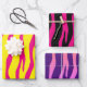Funky zebra Streifen Weihnachtswrapping Papier Blätter. Stilvolle, farbenprächtige Geschenkpackung für den Urlaub, Geburtstag und vieles mehr. Matte und glänzende Optionen. Vergnügen Sie sich mit exotischen Tiermustern, um coole Geschenke und lustige Gastgeschenke zu verpacken. Farbbeispiele schwarz-gelb und rosa. Wechseln Sie in eine andere Farbe. Set von drei.