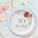 Funny 50 So was Wasserfarbe Blumenpapier 50. Geburtstag Party Papier Teller. Moderne und einfache florale 50. Geburtstagsparty Teller mit schönen Aquarellfarben rote Rosen und Zweigen. Das lustige und positive Zitat 50 So, was ist toll für eine Frau oder einen Mann, der 50 Jahre feiert und ein Gefühl von Spaß hat. Sie können die Altersnummer ändern, wenn Sie gewollt haben.