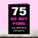 Cette drôle de carte d'anniversaire de 75e anniversaire est parfaite pour les femmes. Un grand 75 blanc a des bords roses chauds sur un arrière - plan noir. "NE PAS PANIQUER" apparaît en rose vif juste en dessous et "vous l'avez définitivement encore". Tout ce qui est drôle apparaît à l'intérieur. Note : Cette carte ne doit être remise qu'aux femmes qui ont un bon sens de l'humour à vieillir. Copyright Kathy Henis