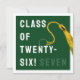 Creative Abschluss-Karte für die Klasse der '25 Absolventen mit grüner Gradmütze, Goldtassel und lustige Linie. So personalisieren Sie Text bearbeiten, um seinen Namen hinzuzufügen.