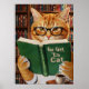 Funny Adorable Reading Cat Art Coffee Tabby Cat Poster