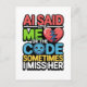 Ein witziges KI-Design mit dem Zitat: "AI sagte, ich bin es oder der Code, manchmal vermisse ich sie." Ideal für Programmierer, Programmierer und KI-Enthusiasten, die den Spaß mit Liebe-Technologie begeistern. Ideal, um Ihre Leidenschaft für Programmieren, künstliche Intelligenz und lustige Geekultur zu zeigen.