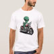 Get ready to turn heads with this hilarious 'Alien Riding Motorcycle' t-shirt! Featuring a cool extraterrestrial cruising on a classic bike, it's perfect for sci-fi enthusiasts and motorcycle lovers with a sense of humor. Made for comfort and style, this tee is an out-of-this-world addition to any casual wardrobe.