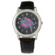 Uhr, Vintage Männeruhr mit schwarzem Lederarmband
