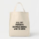 Die perfekte Tasche für Ihre Lieblingsbücher, mit anpassbarem Text "alle meine Lieblingsbücher sind hier" im Grunge-Schriftart.