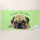 Funny Beach Handtuch mit Mops Dog und Custom Text