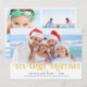 Schnelle und einfache Bestellung! Feiern Sie Weihnachten an der Küste oder gehen Sie zum Strand für die Ferien? Sie werden Ihren Freunden und Familienmitgliedern ein Lächeln bringen, wenn Sie ihnen diese "Sea-Sands Grußkarte" schicken. Mit einem lustigen Pun, dieses nautische Urlaubsdesign mit blauen Streifen, Goldtypografie und Raum für 3 Fotos. Diese Karte für die neuen Jahre ist perfekt für wärmere Klimabedingungen.