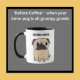 Beginnen Sie Ihren Tag mit einem Hauch von Spaß und Kulanz mit dieser "Funny Before Coffee After Coffee Mops Tasse". Diese köstliche Tasse zeigt einen zornigen, wütenden Mops mit den Worten "Before Coffee" auf der einen Seite und einen glücklichen Mops mit den Worten "After Coffee" auf der anderen Seite. Diese einmalige Tasse erfasst mühelos die spielerischen Ausdrücke von Mops und macht sie zu einem idealen Begleiter für Ihre Kaffeemaschine. Genießen Sie die Kaffeezeit mit dieser auffälligen Tasse. Egal, ob Sie am Morgen die Brötchen schlürfen oder sich mittags abholen lassen, unsere Tasse "Before Coffee After Coffee Mops" wird Ihrem täglichen Kaffeekritual eine Touch Spaß hinzufügen. Lass die gegensätzlichen Ausdrücke der Mops spiegeln deine Vor- und Nachkaffeemaschinen wider und schaffen so einen leichten und unterhaltsamen Start in den Tag. Verschenken Sie diese herzliche Tasse jedem Kaffeeliebhaber oder behalt sie selbst, und genießen Sie das Lächeln, das sie mit jedem Schluck bringt.
