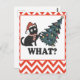 Funny Black Cat Weihnachtsbaum. Niedliche, lustige schwarze Katze, die Weihnachtsbaum schiebt, was?