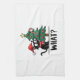 Funny Black Cat Gift Pushing Christmas Tree Over C Geschirrtuch