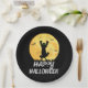 Ideal für Halloween-Partys in der Schule oder für Familienfeiern. Schwarze Katze hängt auf dem Mond.