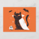 Funny Black Vampire Cat zu Halloween Postkarte