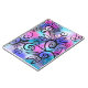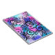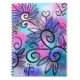 Ein lustiger kleiner Vogel, schöne Blumenelemente und ein kleines Herz auf einem rosa, lila und türkisfarbenen Hintergrund.