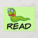 Funny Bookworm READ Geschenk Postkarte
