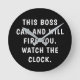 Ihr Chef wird diese lustige Boss Schwarz-weiß Typografie Office Round Clock Liebe! Es ist mit einem lustigen Sprichwort entworfen, "dieser Chef kann und wird dich feuern. Beobachten Sie die Uhr" in fett weißer Schrift auf schwarzem Hintergrund. Perfekte Geschenkidee für jeden Anlass.
