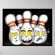 Bowling Buttone mit gemischten Emotionen, lustiges Sportplakat.