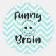 Dieser Aufkleber hat die Worte "Funny Brain", vor einem türkisfarbenen Zickzack Zickzackhintergrund um ein niedliches Gesicht herum. Ich habe eine Gehirnverletzung, das passt mir also.