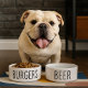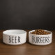 Diese minimalistische Hundeschüssel enthält das Wort "Burger" in fett schwarzem Text auf einer weißen Keramik. Es ist für Hundeliebhaber konzipiert und verbindet Stil und Spaß in einem eleganten, funktionalen Teil. Ideal für Hunde mit Feinschmecker und Haustiereltern, die trendige, schlichte Accessoires Liebe geben. Eine passende Wasserschale mit "Bier"-Text steht separat zur Vervollständigung des Aussehens zur Verfügung.