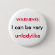 Funny Button For Girs, "Ich kann sehr unladylike sein" Knopf.