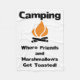 Camping wo Freunde und Marshmallows getoastet werden. Das ist ein lustiges Sprichwort, das um das Lagerfeuer herum funktioniert. Die frische Luft, der Klang der Natur und der Freunde - es wird nicht besser! Dieses einfache Schwarz-Orange-Design sagt alles aus.