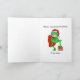 Ein lustiger Frosch mit einem Hut aus dem Weihnachtsmann. Dieser Frosch sieht müde und mürrisch aus von einem harten Tag, der Geschenke liefert. Im Inneren der Karte steht "Frohe Weihnachten haben" "Wenn du musst".
