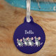 Dieses personalisierte Katz-ID-Tag zeichnet sich durch ein niedliches Cartoon-Mäuse-Design und den Namen Ihrer Katze auf einem stylisch dunkelblauen Hintergrund aus. Ob für Ihr eigenes Haustier oder als einzigartiges Geschenk für Katzenliebhaber, dieses Tag verbindet Spaß und Stil. Personalisieren Sie die Rückseite mit Ihrer Adresse und Telefonnummer oder einem anderen Text.
