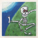 Dieser Untersetzer aus Glas hat ein lustiges Skelett vom Typ Cartoon mit rot-gelb-goofy Augen, die in einem grasbewachsenen Feld unter einem blauen Hasenmond tanzen und tiefblauen Nachthimmel.