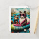 Funny Cat and Squirrel Float Trip Postkarte