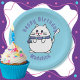 Funny Cat Cartoon Blau Personalisiert Geburtstag Pappteller