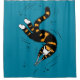 Der Funny Cat Duschvorhang mit einer farbigen Illustration einer seltsamen Katzenkreatur, die mit Aal wie Bewegungen über dunkelblauem, individualisierbarem Hintergrund schwimmt. Fleisch wird irgendwie aus den Händen genommen, das sein Skelett zeigt, aber das süße Tier ist in seinem glücklichsten Staat des Geistes.