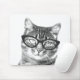 Funny Cat fotografiert Maus-Pad Design. Niedliche Geschenkidee für Katzenliebhaber/Katzenfreunde. Passen Sie es mit Ihrem Haustiernamen an. Schwarz-Weiß-Kätzchen tragen eine nerdige Brille.