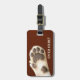 Gepäckanhänger mit einem lustigen Bild eines Katzenpaws auf einem Lederhintergrund aus Imitaten.