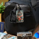 Luggage tag featuring a photo of cat wearing a striped colorful sweater, a scarf, and pilot goggles. On the back it has a funny saying “property of the cat”. Personalize it with your contact information in case your luggage gets lost or stolen.