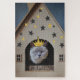 Dieses Puzzle-Design zeigt das Bild einer seriösen Katze, die eine goldfarbene Krone trägt, während sie von einem Haus aus aussieht, das mit Sternen aus schwarzem und goldenem Glitzer dekoriert ist.Diese Auflistung wird für alle Größen mit Ausnahme der 20" x 20" verwendet, die unter folgendem Link verfügbar ist: https://bit.ly/2Yyx7Cn