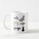 Eine bezaubernde Kaffeemaschine mit den Worten Cats Coffee Yoga mit niedlichen Cartoon Zeichnungen von jedem. Das ist das perfekte Geschenk für eine Frau, die Kaffee, Yoga und ihre Katze .