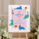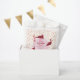 A playful birthday-themed design featuring deep cats in tiny party hats, surrounded by pastel balloons, confetti dots, and a soft pink centerpiece.