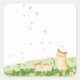 Funny Cats singen unter Kirschblüten Quadratischer Aufkleber