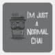 Un autocollant gris avec l'illustration excentrique d'une tasse de chai avec des lunettes et une moustache, avec le texte "Je ne suis qu'un Chai normal". Parfait pour cette personne dans votre vie qui aime les puns et est "normal".