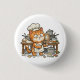 This funny button features a cute orange cat dressed as a chef, standing in a chaotic kitchen filled with pots, pans, and spilled ingredients.