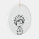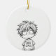 A cute and funny chibi anime boy with a confused expression and messy hair. A minimalist black and white design perfect for anime lovers and humor fans.