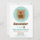 L'invitation pour l'anniversaire de cet enfant présente un drôle de chien brun à la langue rose sur un arrière - plan turquoise.