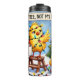 Diese lustige Abbildung zeigt ein Baby-Kick, das in Weihnachtsbeleuchtung verstrickt und verärgert aussieht. Zwei andere Küken sehen mit Gleichgültigkeit an. Ein humorvolles Schild im Hintergrund lautet: "NICHT MEIN BAUM, NICHT MEIN PROBLEM", was die chaotische und relatible Seite des Urlaubs mit einer Touch Sarkasmus einfängt.