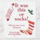 Manche Leute sind einfach zu schwer zu kaufen! Ich habe nichts gegen Socken für Geschenke, aber Sie wissen, sie haben bereits eine Schublade voll. Dieses lustige Geschenk Weinflasche-Label macht ein humorvolles Weihnachtsgeschenk. Zwei Orte, um mit Ihrem eigenen Namen und Ihrer Botschaft zu personalisieren. Feierlich rot und grün.