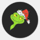 Funny Christmas Frog Wearing Santa Hat And Lights Runder Aufkleber