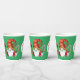 Die Funktion dieser niedlichen Holiday Saison Papiertassen ist ein niedlicher Gnome-Elf, der in einer Weihnachtsmannmütze mit roten und goldenen Rentiermuster gekleidet ist. Er hält in der einen Hand ein Glas vom Weihnachtsmann und in der anderen ein rot-weiß gestreiftes Bonbon. Das Bild wird zweimal auf jedem Becher gedruckt, mit einem weißen Banner, der zwei benutzerdefinierte Textfelder enthält. Sag, was du willst! Alles wird auf einem mittelweihnachtlichen grünen Hintergrund platziert.