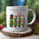 Mit dieser personalisierten Weihnachtsfeier-Tasse, die mit einer köstlichen Weihnachtsgruppe in festlichen Outfits gekleidet ist, mit Weihnachtsmannmützen, Rentierpflegern, Lichtern und Urlaubszubehör, vervollständigen Sie Ihren Kaffee oder Kakao. Passen Sie es mit Ihrem Familiennamen und Jahr an, um einen einzigartigen Sake zu erhalten, der jedem Lächeln lässt. Perfekt als kleine Geschenk, als Gag-Geschenk oder als festliche Touch zu Ihrer Kochsammlung. Eine spielerische und erschwingliche Geschenkidee für Familie, Freunde oder Kollegen während der Ferienzeit.