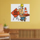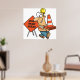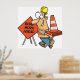 Funny Construction Worker Road Work Ahead Sign Poster