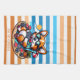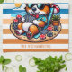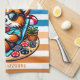 Créez une serviette de cuisine personnalisée unique dans un style vintage avec une drôle d'illustration d'un corgi jouant au poker sur une plage. Utilisez le modèle pour taper votre nom de famille ou un autre texte.
