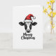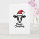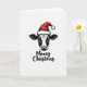 This Christmas greeting card is a delightful blend of whimsy and simplicity, guaranteed to bring a smile to anyone's face. The main design features a charming cow wearing a fluffy Santa hat, with its playful expression capturing the festive spirit perfectly. The card is adorned with festive emojis like 🎅🏼 and 🎄 to add an extra touch of holiday cheer. The text "Mooey Christmas" is elegantly displayed in a bold, stylish font, making it the focal point of the card. Spread some joy this season with this adorable and unique card that is sure to bring warmth and laughter to your loved ones.