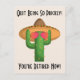 Funny Cowboy Cactus Western Theme Retirement Party Postcard Gruß mit individuellem Text und Bild eines Saguaro Kaktts mit Sonnenbrille und einem übergroßen Sombrero umgeben von den Worten Quit Being So Prickly, You're Remüde Now! Passen Sie diese wilde westliche Rentenkarte an, um den letzten Arbeitstag Ihres Liebsten zu feiern und die neue Freiheit, nichts mehr zu tun, als den ganzen Tag zu spielen!
